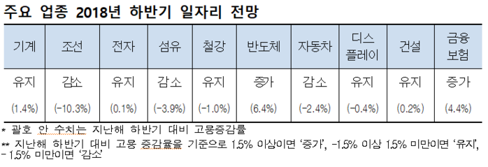 반면 조선·섬유·자동차 업종은 일자리가 줄어들 것으로 예상된다.