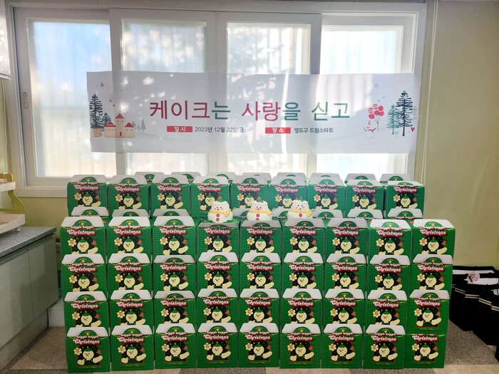이날 지원된 케이크는 작년에 이어 올해도 뚜레쥬르 영도미라주점의 후원으로 이루어졌다.