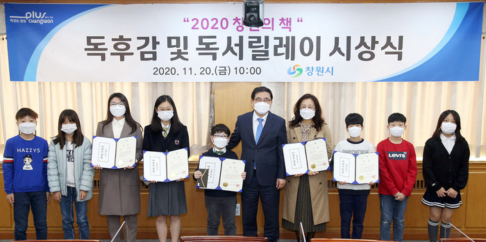 올해 5월부터 실시한 ‘2020 창원의 책’ 독후감 전국 공모전에는 독후감 462편이 접수됐으며, 독서릴레이는 67팀 992명이 참여했다. 지난 10일 실시한 심사 결과 독후감 25편, 독서릴레이 12팀이 우수작(팀)으로 선정됐다. 시상식에는 각 부문 대표자가 참석했다.