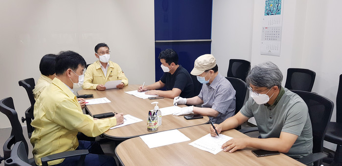 | ▲31일 오전 정하영 김포시장이 확진환자와 관련 긴급회의를 주재하고 있다.(김포시 제공) |