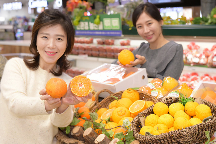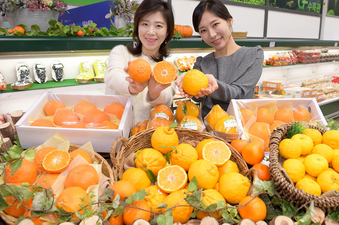 | ▲26일 서울 서초구 농협유통(대표이사 이수현) 하나로마트 양재점에서는 첫 출하한 한라봉(3kg) 3만9800원을 비롯해 조생감귤(4kg) 6380원(NH, 삼성, 국민, 시티 카드결제 시), 황금향(2kg) 1만2900원, 유자(1kg) 9980원, 레드향(1.5kg) 및 천혜향(1.5kg)을 각 1만9500원에 주말까지 할인 판매한다.(농협유통 제공) |