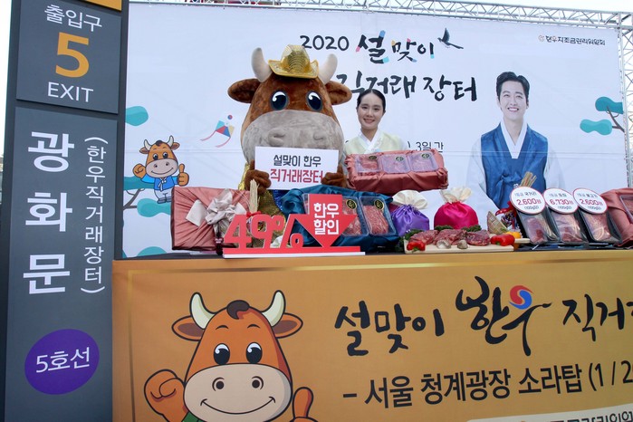 2020년 1월 20일, 한우산업의 안정적 발전을 위해 설립된 한우자조금관리위원회(위원장 민경천, 이하 한우자조금)가 20일부터 22일까지 삼일간 광화문역 5번 출구에 위치한 서울 청계광장 소라탑 앞에서 ‘2020년 설맞이 한우 직거래장터’를 개최하고 한우를 최대 49% 할인된 가격에 판매한다.