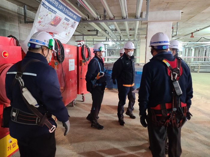 ▲공사장 임시 소방 시설 확인 및 지도. |