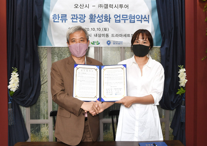[로컬세계 고용주 기자]경기 오산시는 지난 10일 오산시 내삼미동 소재 드라마세트장에서 ㈜갤럭시투어(대표이사 김소연)와 오산 지역 한류 관광 활성화를 위한 업무 협약을 체결했다고 12일 밝혔다.