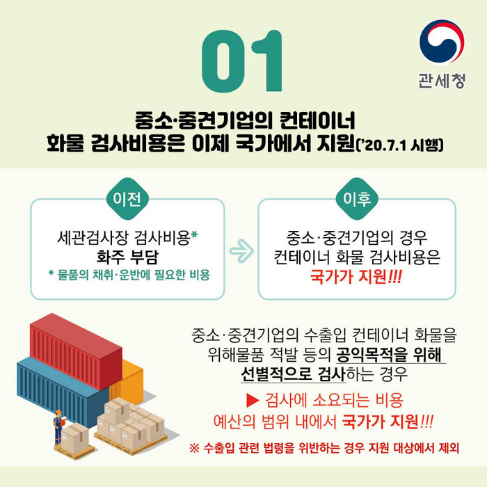 중소‧중견기업의 컨테이너 화물 검사비용을 국가가 부담한다.
