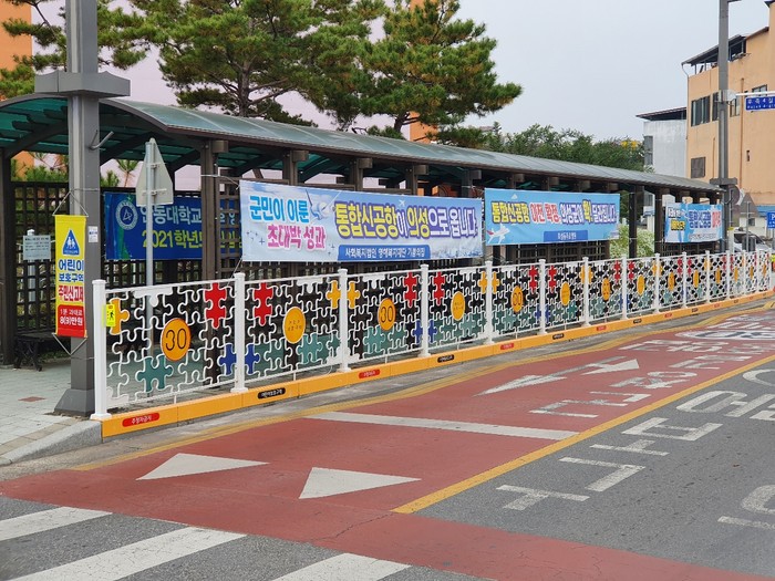 이번 사업은 경계석에 시인성이 높은 ‘주정차금지’, ‘어린이보호구역’ 문구가 표기된 노란색 커버를 설치해 차량 운전자가 어린이보호구역을 쉽게 인지해 서행(시속 30km 미만 주행), 보호구역 내 주정차 방지 등 안전운행도 유도하고 어린이 교통안전에 대한 경각심을 높이기 위해서 진행했다.