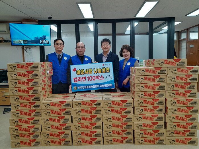 민주평화통일자문회의 익산시협의회는 지난 8월에도 북한이탈주민과 다문화 가정에 백미(10kg) 100포를 기부하여 이웃 사랑 나눔을 실천해왔으며, 12월에는 인화동행정복지센터에 컵라면 100박스를 기부하여 나눔 실천 릴레이를 이어오고 있다.