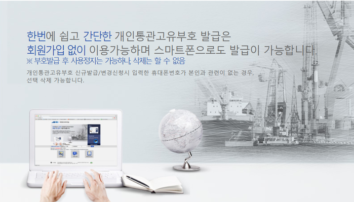 개인통관고유부호는 관세청 개인통관고유부호 발급사이트(https://p.customs.go.kr)에서 본인인증을 거친 후 성명, 핸드폰 번호 등 간단한 정보를 입력해 발급받으면 된다.
