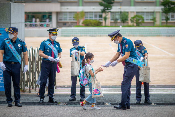 한 학부모는 “코로나로 등교가 걱정되었는데 경찰이 마스크를 나누어 주고 차량 통제도 현장에서 직접 해주니 아이들이 안전하게 등교할 수 있다”며 감사를 표했다.