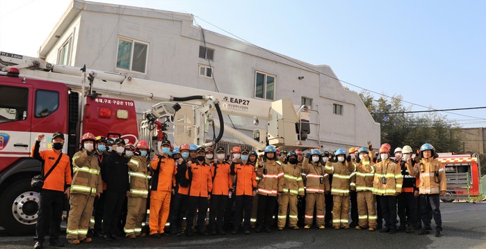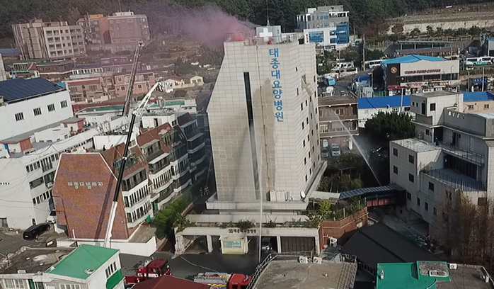 이번 훈련은 화재발생 시 다수인명피해가 우려 되는 요양병원을 대상으로 고가사다리·굴절차를 활용한 신속한 방수훈련 및 인명구조훈련을 함으로써 화재를 초기에 진압해 대형인명피해 예방하고, 태종대 요양병원처럼 여러 대의 소방차가 접근하기 힘든 협소한 골목길에 대해 다 관창 방수 훈련도 동시에 실시했다.