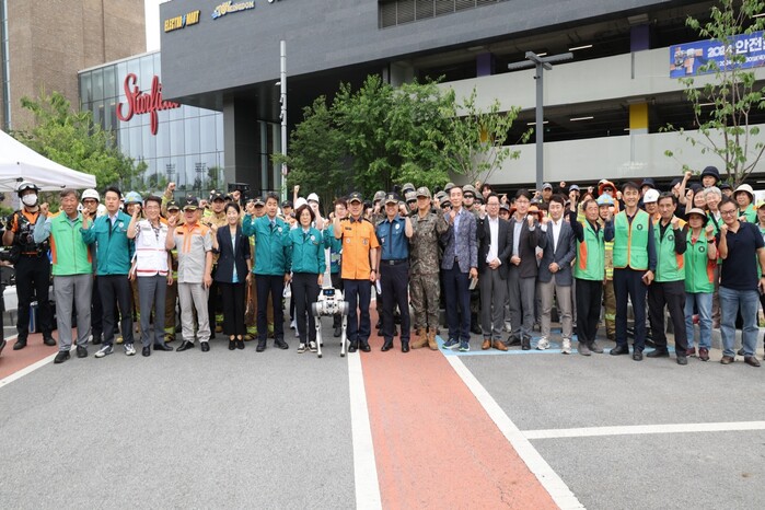 특히, 올해 훈련은 지진으로 인한 통신 마비 상황에 대비하기 위해 훈련 참여기관 간 재난안전통신망(PS-LTE)을 적극적으로 활용해 재난 상황 발생 초기대응부터 복구까지 전반적인 대응체계를 점검했고, 소방 드론(열화상카메라), 매몰자 음향탐지기, 4족 보행 로봇 등 다양한 장비를 동원하여 훈련 효과를 극대화했다.