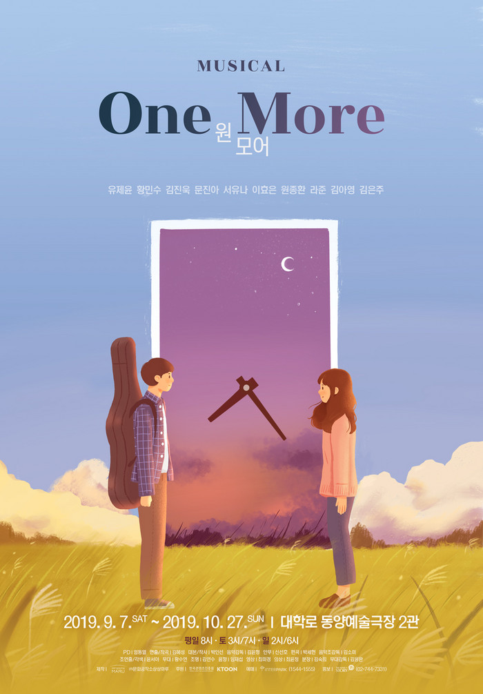 ‘김종욱 찾기’, ‘오! 당신이 잠든 사이’의 작곡가 김혜성, ‘엘리자벳’, ‘브로드웨이42번가’, ‘싱글즈’의 박인선 작가, ‘그날들’, ‘팬레터’의 신선호 안무가 등 실력파 크리에이터의 협력으로 완성된 뮤지컬 ‘원모어(One More)’는 탄탄한 스토리와 깊고 짙은 감성의 음악으로 동양예술극장 2관에서 오는 10월 27일까지 공연된다.
