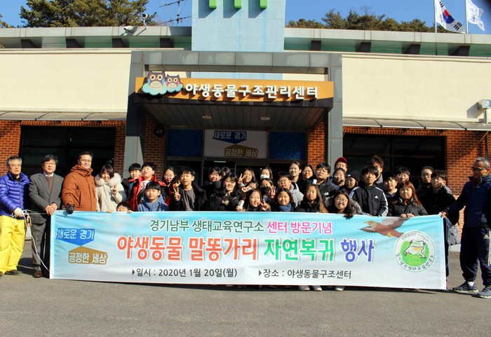 이날 행사에는 현재 경기남부생태교육연구소에서 교육을 받고 있는 학생들과 학부모 등 20여명이 참가해 더욱 뜻깊은 시간을 가졌다. 행사 전 학생들은 센터 내에서 보호 중인 야생동물들을 관람하고 치료가 완료된 말똥가리를 직접 자연으로 돌려보내며 생태복원의 중요성을 몸소 체험했다.