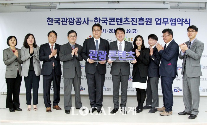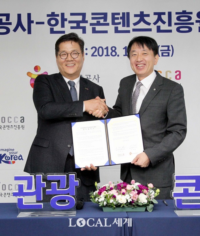 [로컬세계 길도원 기자]한국콘텐츠진흥원(원장 김영준, 이하 한콘진)과 한국관광공사(사장 안영배, 이하 공사)는 19일 서울 중구 CKL 기업지원센터(한국관광공사 서울센터) 16층에서 양 기관의 교류와 협력을 위한 업무협약을 체결했다.