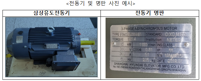 | ▲전동기 및 명판 사진 예시.(관세청 제공) |