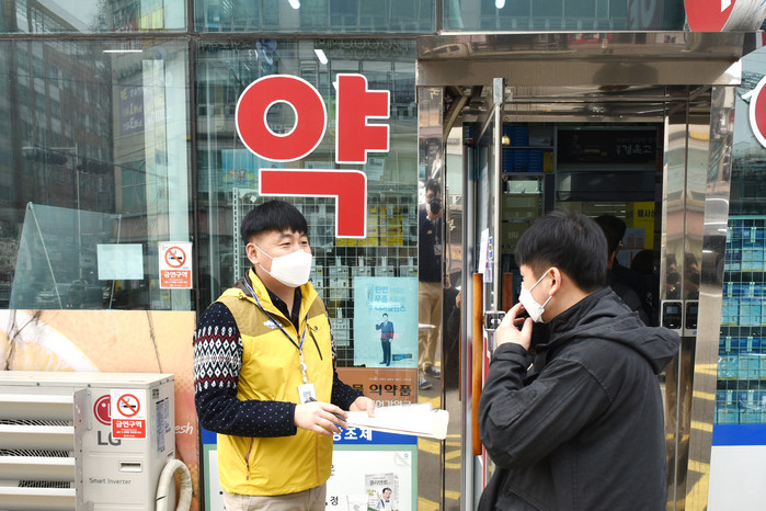 직원들은 판매 예정시간에 줄서기 등 질서유지와 신분증 생년 확인, 정부의 마스크 구매 5부제 홍보를 맡고 있다.