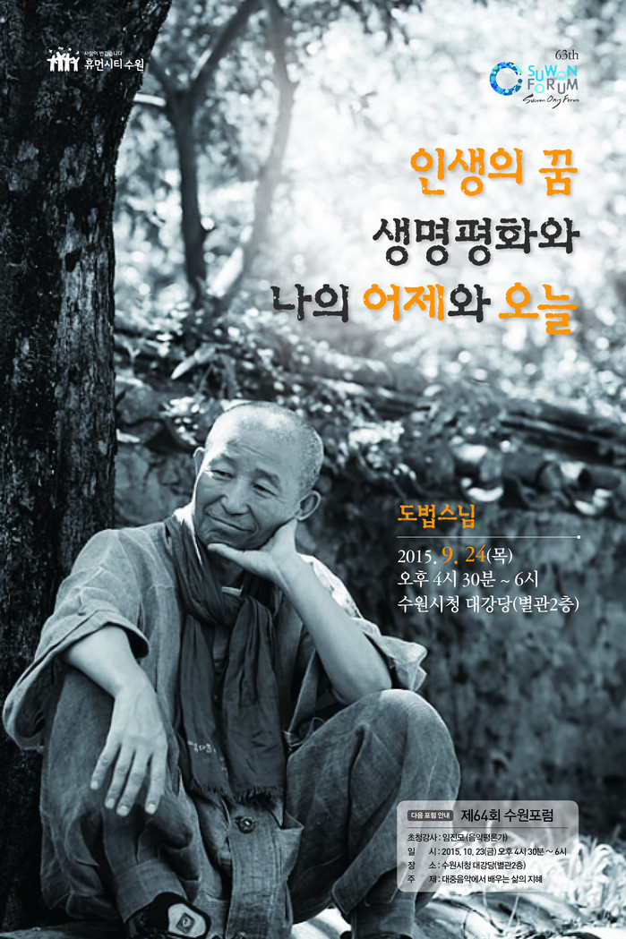 ▲도법스님 초청 제63회 수원포럼 포스터. |