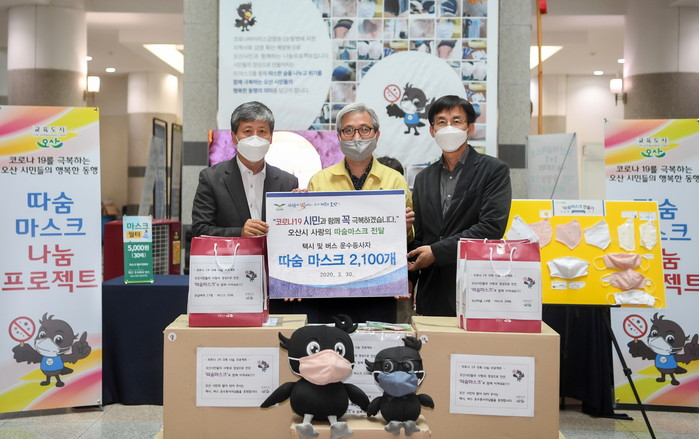 [로컬세계 고용주 기자]경기 오산시는 지난 30일 코로나19 감염에 취약한 관내 택시·버스 운수종사자에 ‘따숨마스크’ 지원했다고 31일 밝혔다.