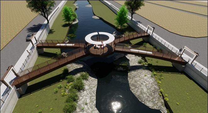 인도교 중앙에는 고창천을 조망할 수 있는 공간이 마련되고, 주출입구 양편에는 완만한 경사로 노인‧장애인 등 교통약자들이 편리하게 이용할 수 있게된다.