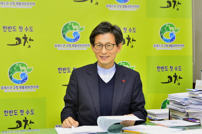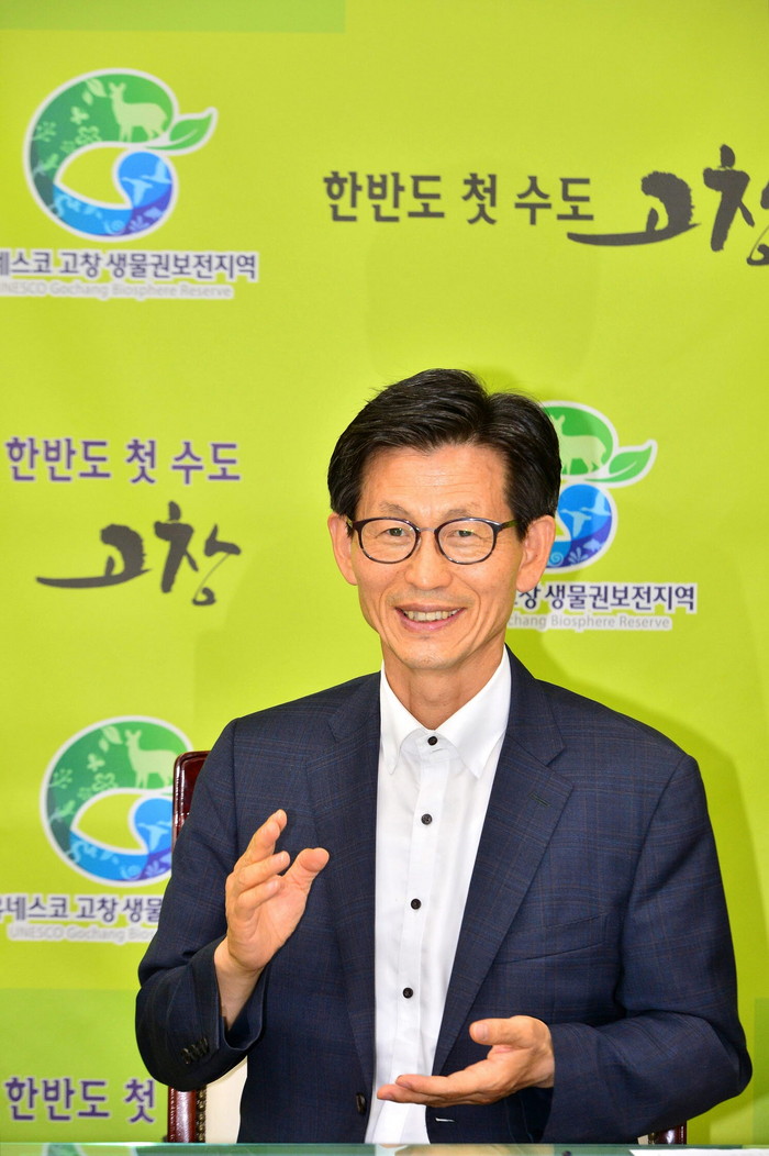 유기상 고창군수 인터뷰 “새로운 고창의 역사를 써 달라는 군민들의 명령을 받들어 이에 대한 밑그림을 그리는 데 주력 했습니다” 유 군수는 그간의 소회에 대해 “‘한반도 첫 수도’ 고창의 자긍심을 끌어 올리는 데 집중해 ‘자랑스런 고창만들기 군민운동’ 등을 펼쳐왔다”며 “고창 기(氣)살리기에 공무원뿐만 아니라 사회단체, 일반군민들도 적극적으로 동참해줘 진심으로 감사 드린다”고 밝혔다.