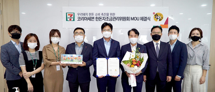 | ▲10일 오전, 한돈자조금관리위원회와 세븐일레븐이 한돈 소비 촉진을 위한 업무협약(MOU)를 체결했다. |