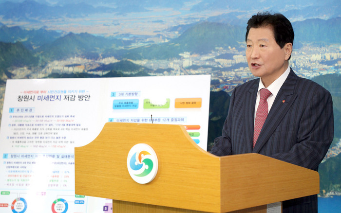 | ▲안상수 시장이 미세먼지 저감 위한 ‘6대 부문 12개 중점과제’를 발표했다.(창원시 제공) |