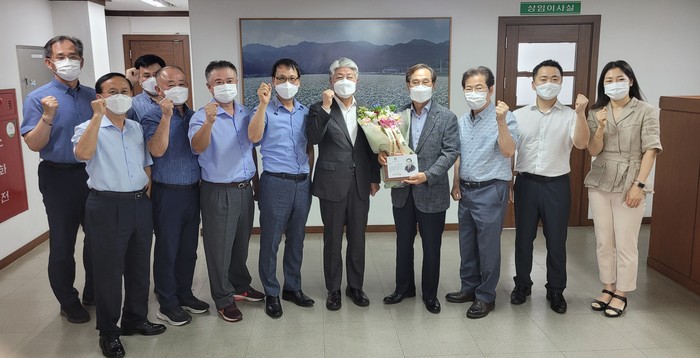 | ▲서서울농협이 농협 창립 60주년 정기표창 총화상 수상 기념촬영을 하고 있다.(오른쪽 4번째부터 서서울농협 조원민 조합장, 농협 서울지역본부 이대엽 본부장) |