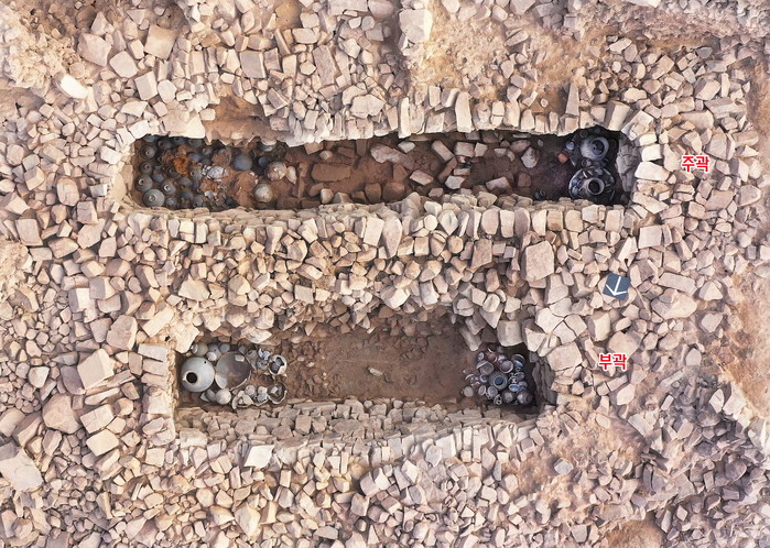 주석곽은 내부 길이 5.7m, 너비 1m, 높이 1.4m정도이며 벽석은 모두 할석(깬돌)을 사용해 축조했으며 내부 중앙에는 시상석(시신 또는 목관 받침돌)이 확인됐다.
