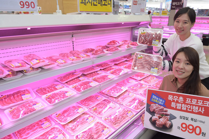 농식품 전문매장 농협 하나로마트를 운영하고 있는 농협유통(대표이사 나병만)은 목우촌 프로포크 삼겹살과 목심을 각각 990원(100g)에 할인 판매한다.