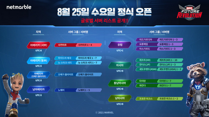▲'마블 퓨처 레볼루션 글로벌' 서버 리스트 이미지 [넷마블 제공] |