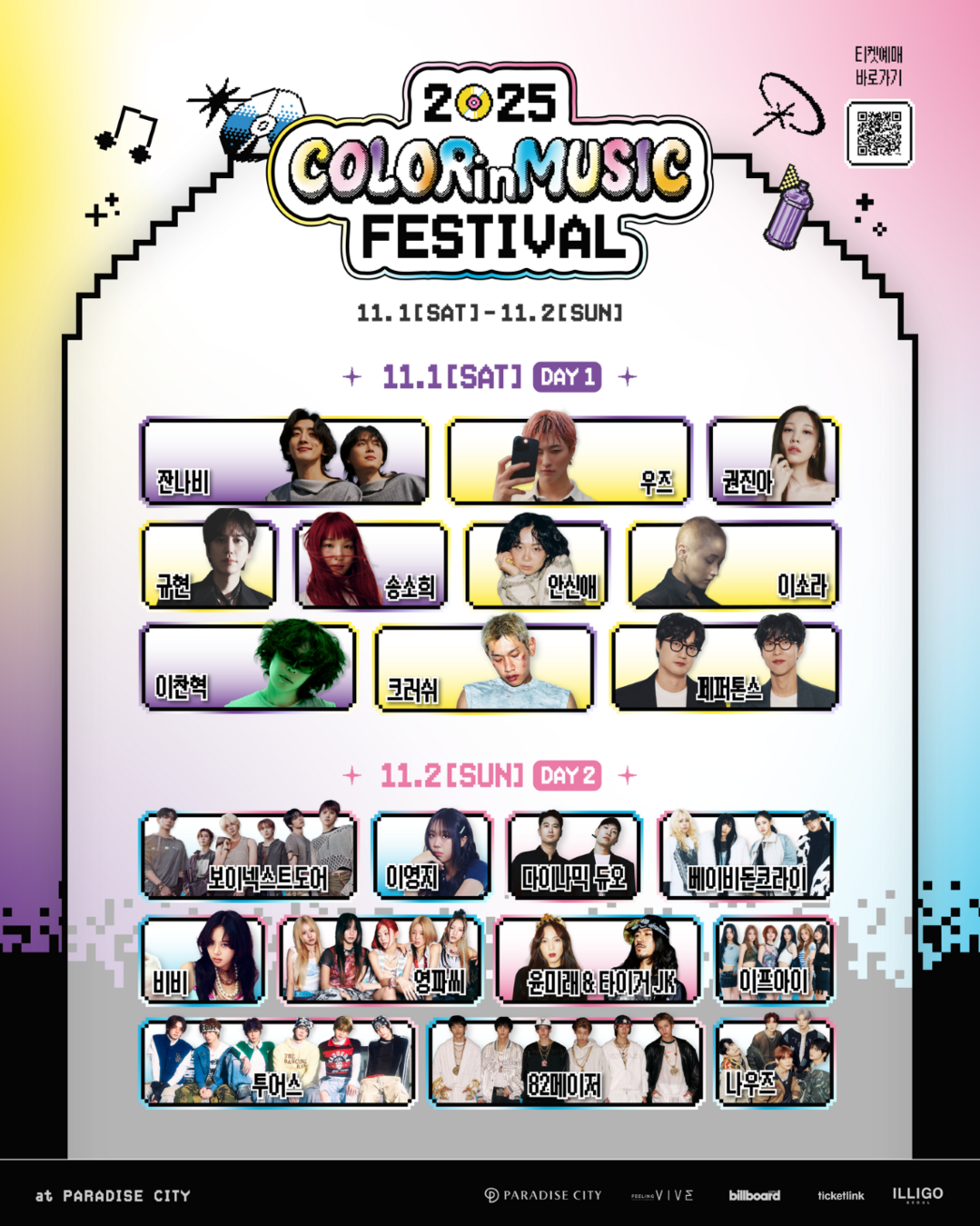 파라다이스시티는 오는 11월 1~2일 양일간 빌보드코리아, 필링바이브와 함께 복합형 음악 축제 ‘2025 컬러 인 뮤직 페스티벌(2025 Color in Music Festival)’을 개최한다고 31일 밝혔다.