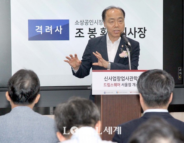 | ▲소상공인시장진흥공단은 7일 오전 서울 마포에 위치한 신사업창업사관학교 복합기능형 체험점포인 “드림스퀘어 서울점” 개소식을 가졌다. 조봉환 소상공인시장진흥공단 이사장이 인사말을 하고 있다. |