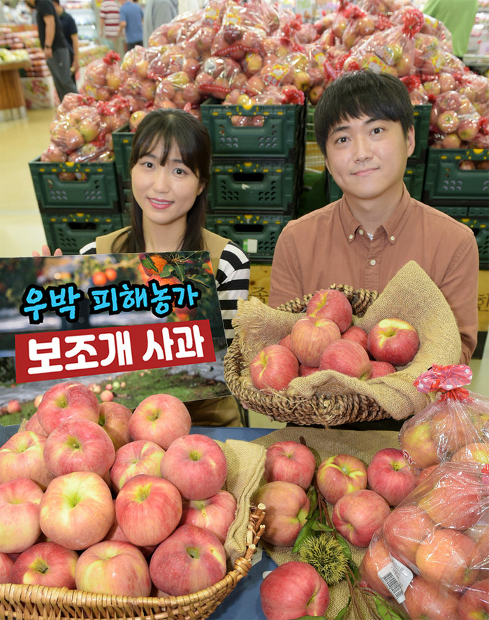 오는 11~13일까지 사흘간 농협유통 하나로마트 양재점에서 우박 피해 농가 보조개 사과(2kg/봉지) 1봉을 4980원에 판매한다. 준비된 행사 물량은 5톤가량 된다.