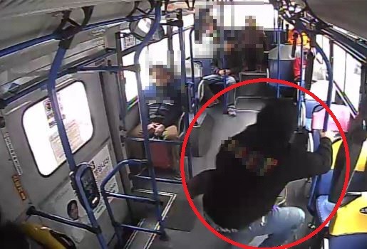 ▲피의자 A씨시내버스가 출발하자 일부러 넘어지는 모습. |