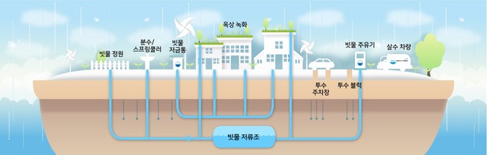 | ▲빗물 순환을 위한 레인시티 빗물 인프라 구성도. |