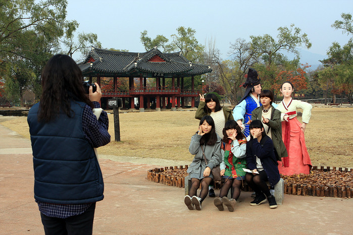 ▲광한루원 종합정비사업을 추진하기로 한 가운데 광한루원을 찾은 수학여행단. |