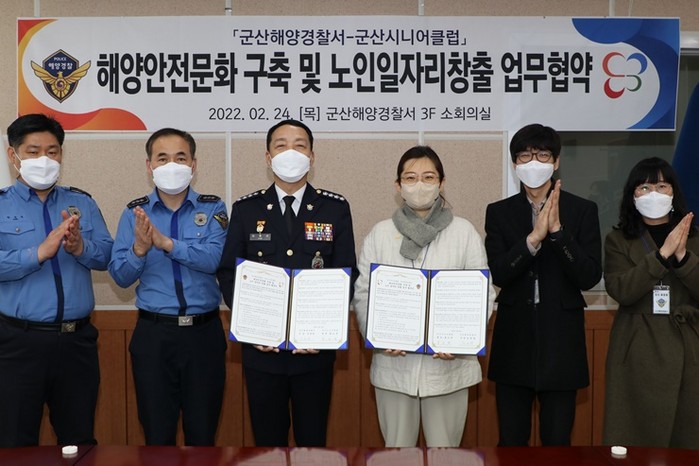 [로컬세계 양해수 기자]전북 군산해양경찰서는 지난 24일 군산시니어클럽(관장 홍소연)과 노인 일자리 창출을 위한 업무 협약을 맺었다고 25일 밝혔다.