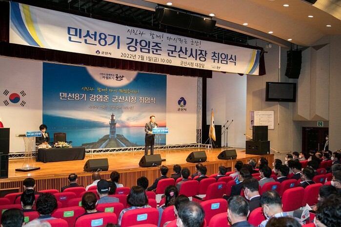 강임준 시장은 취임사를 발표하면서, 4년전 전국 최초로 고용위기지역, 산업위기대응특별지역 지정과 코로나19 팬데믹이라는 삼중고의 어려움 속에서도 위기를 극복하고 새로운 도약의 기틀을 마련하게 된 것은 27만 군산시민들의 헌신과 노력 덕분이라며 감사의 뜻을 표했다.