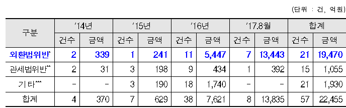 | ▲해운·선박업종 외국환거래법 등 적발실적. |