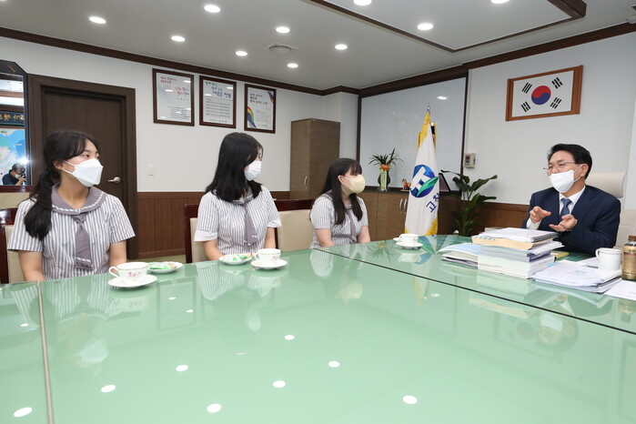 4일 고창군에 따르면 심덕섭 고창군수가 지난 3일 오전 군수실에서 고창군 꼬마외교관 활동 청소년 5명과 인터뷰를 진행했다.