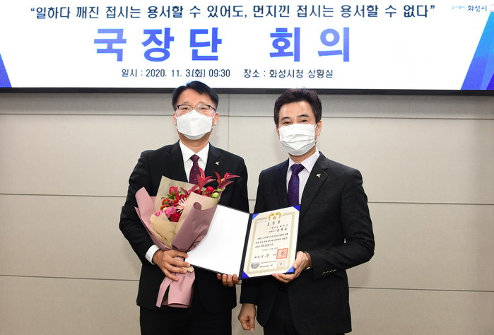 화성시는 3일 국장단회의를 개최하고 ‘지방자치의 날’기념 지방자치 발전 유공자에 이름을 올린 송 과장에게 자체 시상식으로 상을 수여했다.