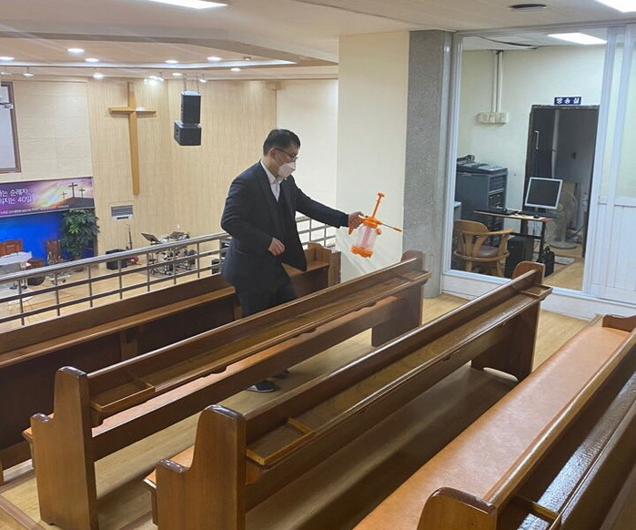 | ▲종교시설을 소독하고 있는 관계자 모습. |