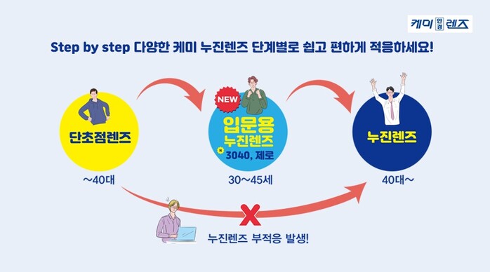 ‘케미 ZERO’는 중년안(노안)이 있음에도 누진렌즈 착용 경험이 없는 분들을 위한 가성비 좋은 입문용으로 추천되고, ‘케미 3040’은 초기 중년안인 3040 세대들이 쉽게 적응할 수 있도록 개발된 제품이다. 누진렌즈 착용 초기에 나타나는 울렁증, 어지럼증 등 부적응 증상을 상당 부분 해결한데다 10만원대 부터의 가격으로 소비자 만족도가 높아진 점이 인기를 끈 요인으로 꼽힌다. 성인 고객들의 단초점렌즈 구입 가격이 평균 6만~8만원대임을 감안할 때 가격 차이가 크지 않다.