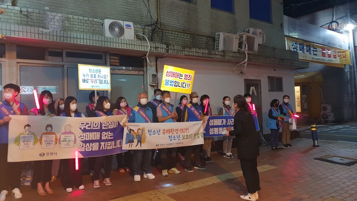 [로컬세계 한용대 기자]경남 창원시(시장 허성무)는 지난 24일 저녁 서성동성매매집결지 일원에서 성매매근절 및 청소년보호 민·관·경 합동캠페인을 실시했다고 25일 밝혔다.