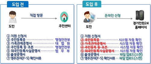 우선 민원 행정서비스에 대한 온라인 신청 창구를 통합 일원화하고 구비서류를 최소화 하도록 ‘경기민원24’ 시스템을 구축할 계획이다.
