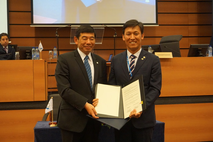| ▲오른쪽부터 김영문 관세청장과 쿠니오 미쿠리야WCO 사무총장.(관세청 제공) |