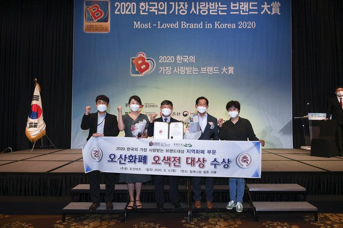 [로컬세계 고용주 기자]경기 오산시의 지역화폐 '오색전'이 4일 서울 힐튼호텔에서 개최된 ‘제10회 2020 한국의 가장 사랑받는 브랜드대상’ 시상식에서 지역화폐 부문 ‘대상’을 수상했다.
