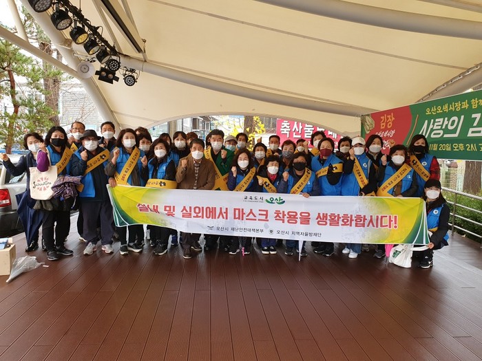 [로컬세계 고용주 기자]경기 오산시(시장 곽상욱)는 19일 오색시장에서 코로나19 확산 방지를 위한 ‘마스크 착용 의무화 홍보’ 캠페인을 벌였다고 밝혔다.