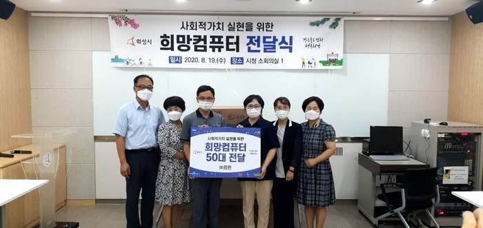 [로컬세계 고용주 기자]경기 화성시는 19일 사회적경제기업인 ㈜컴윈이 시를 찾아 소외계층을 위한 희망컴퓨터 50대를 전달했다고 밝혔다.