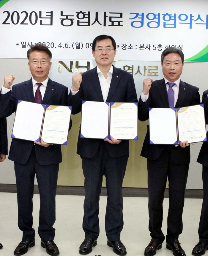 경영목표 달성을 위한 협약은 중소가축사료 판매확대를 위해 신설된 박종규 중소가축사료분 사장과 2019년 종합업적평가 1위인 김성호 충청지사장이 대표해 체결했다.